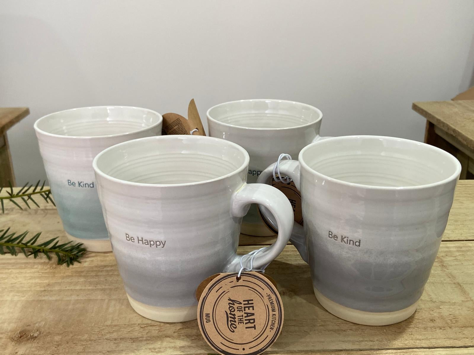 Ceramic "Be Kind" & "Be Happy" Large Mugs (Set of 4)