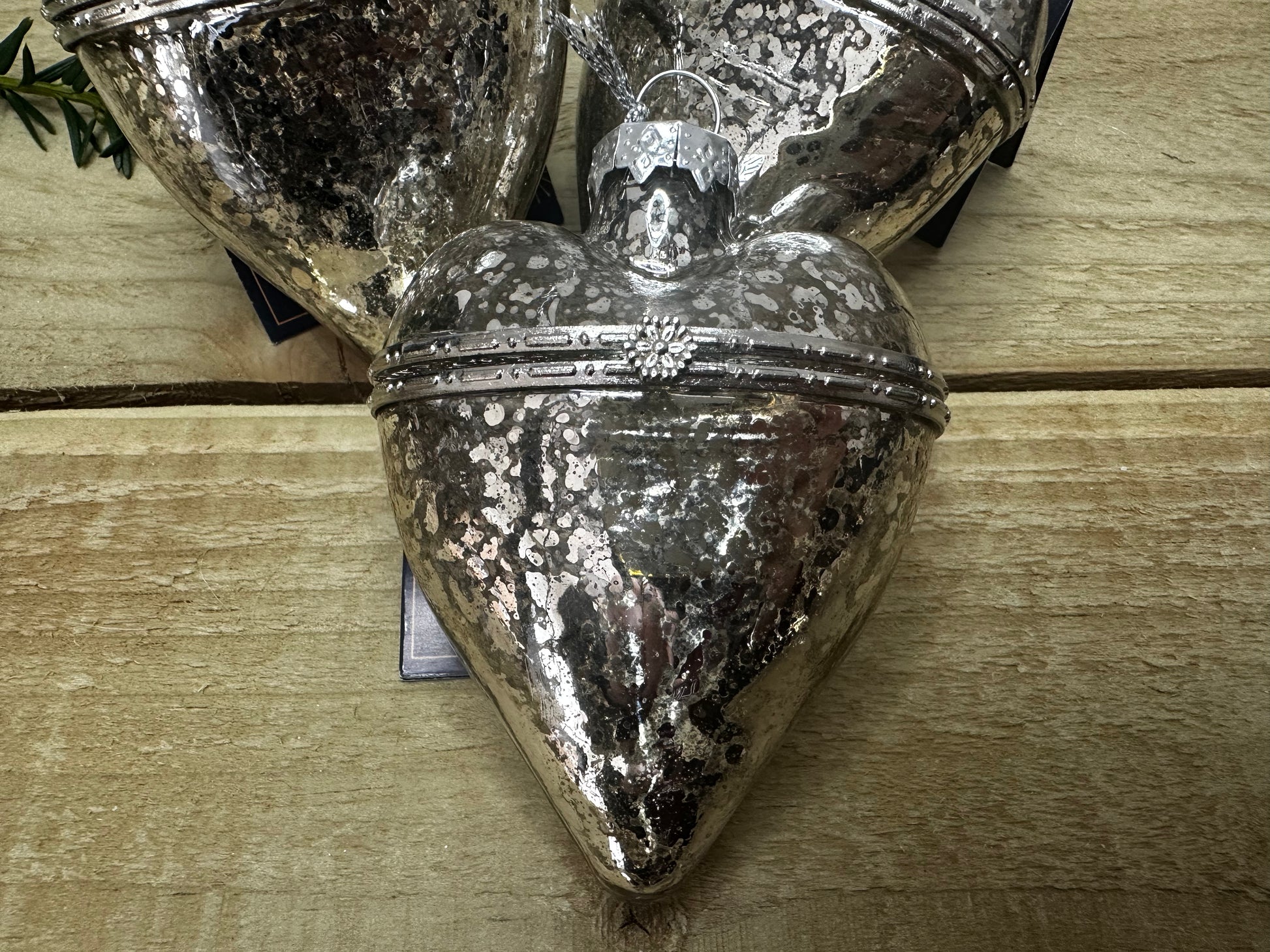 Deco Silver Glass Vintage Heart Christmas Bauble (Set of 3)