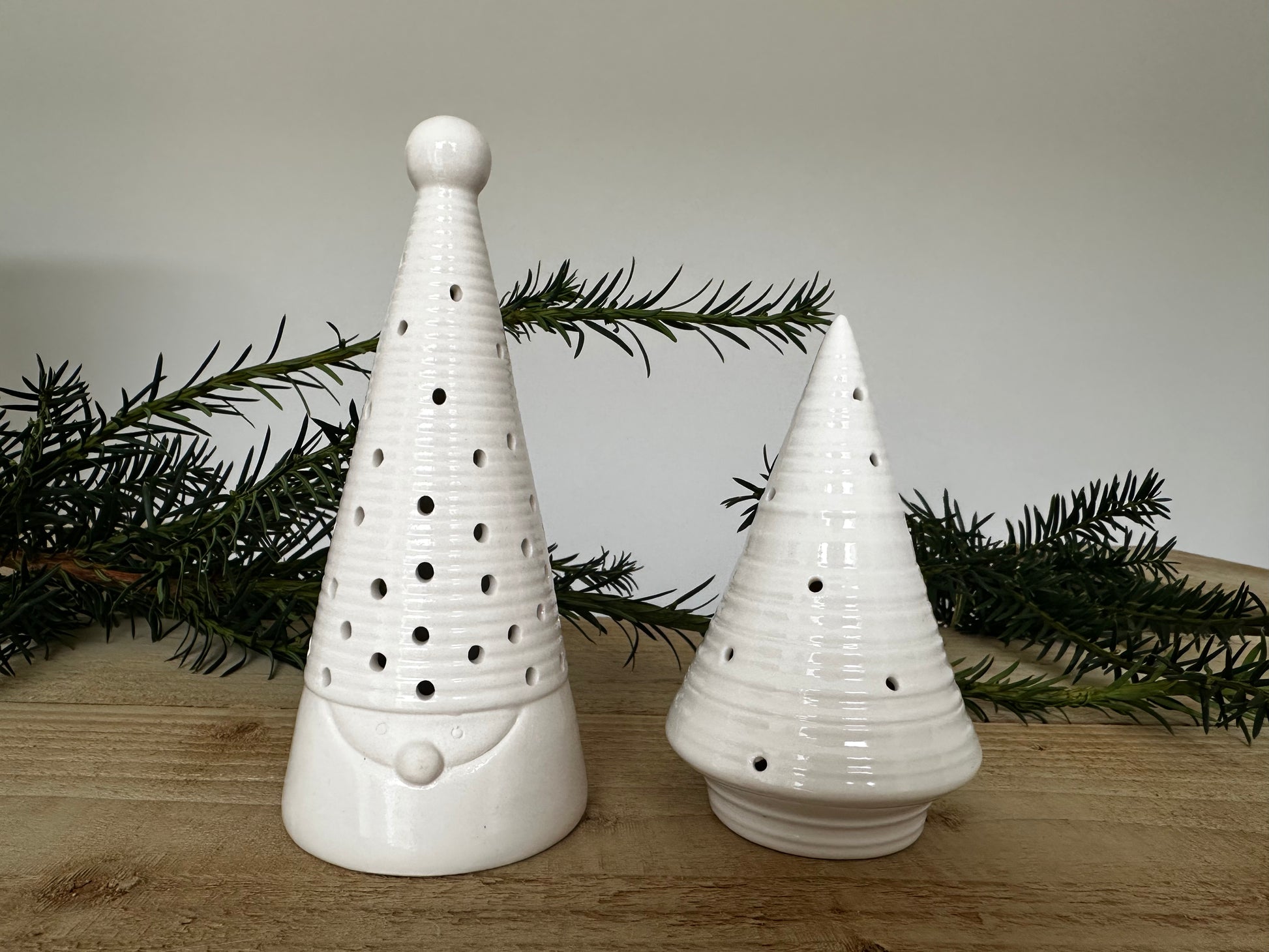 Light Up Ceramic Christmas Tree x2 (Santa Face & Ribbed Tree)