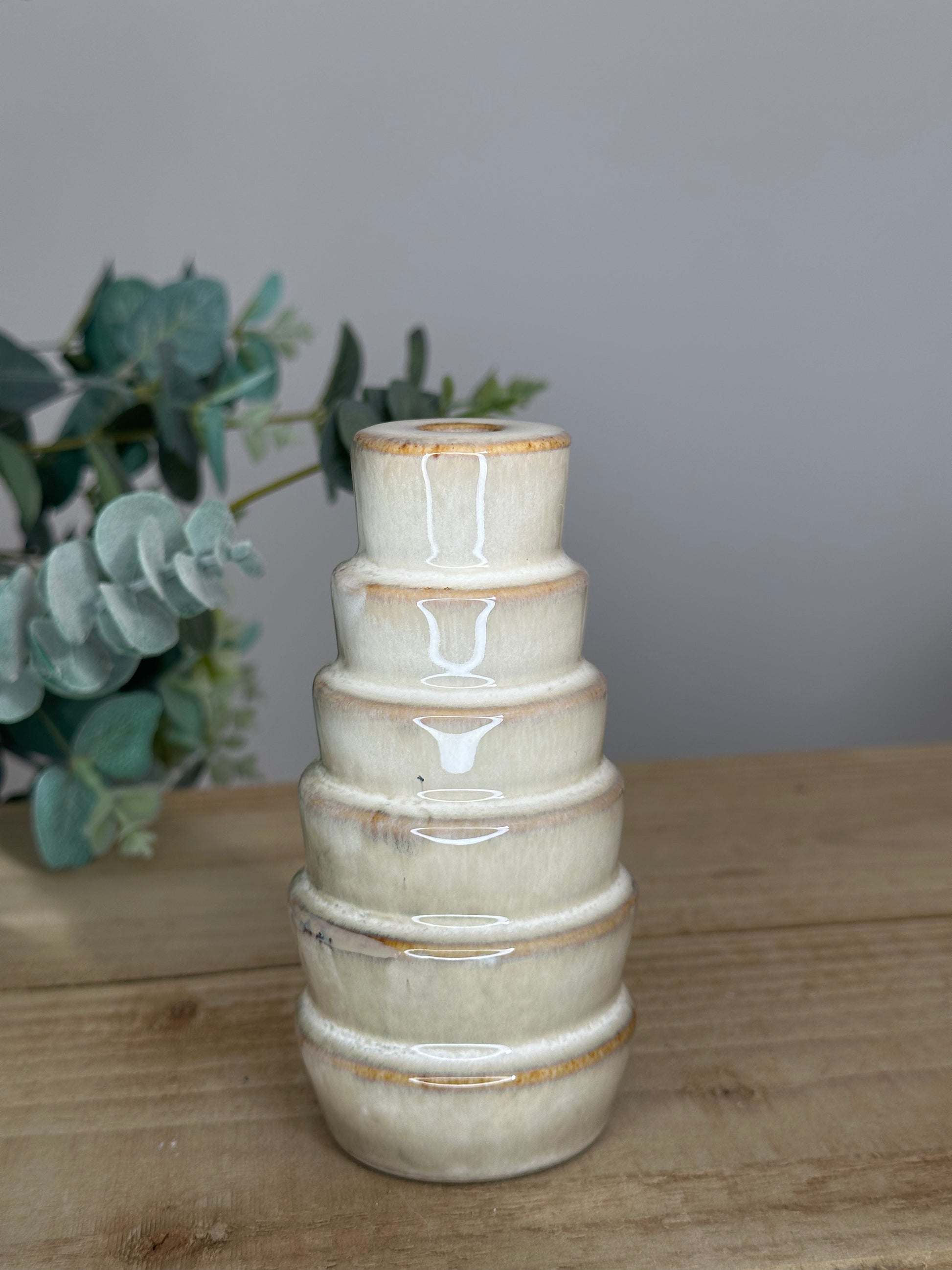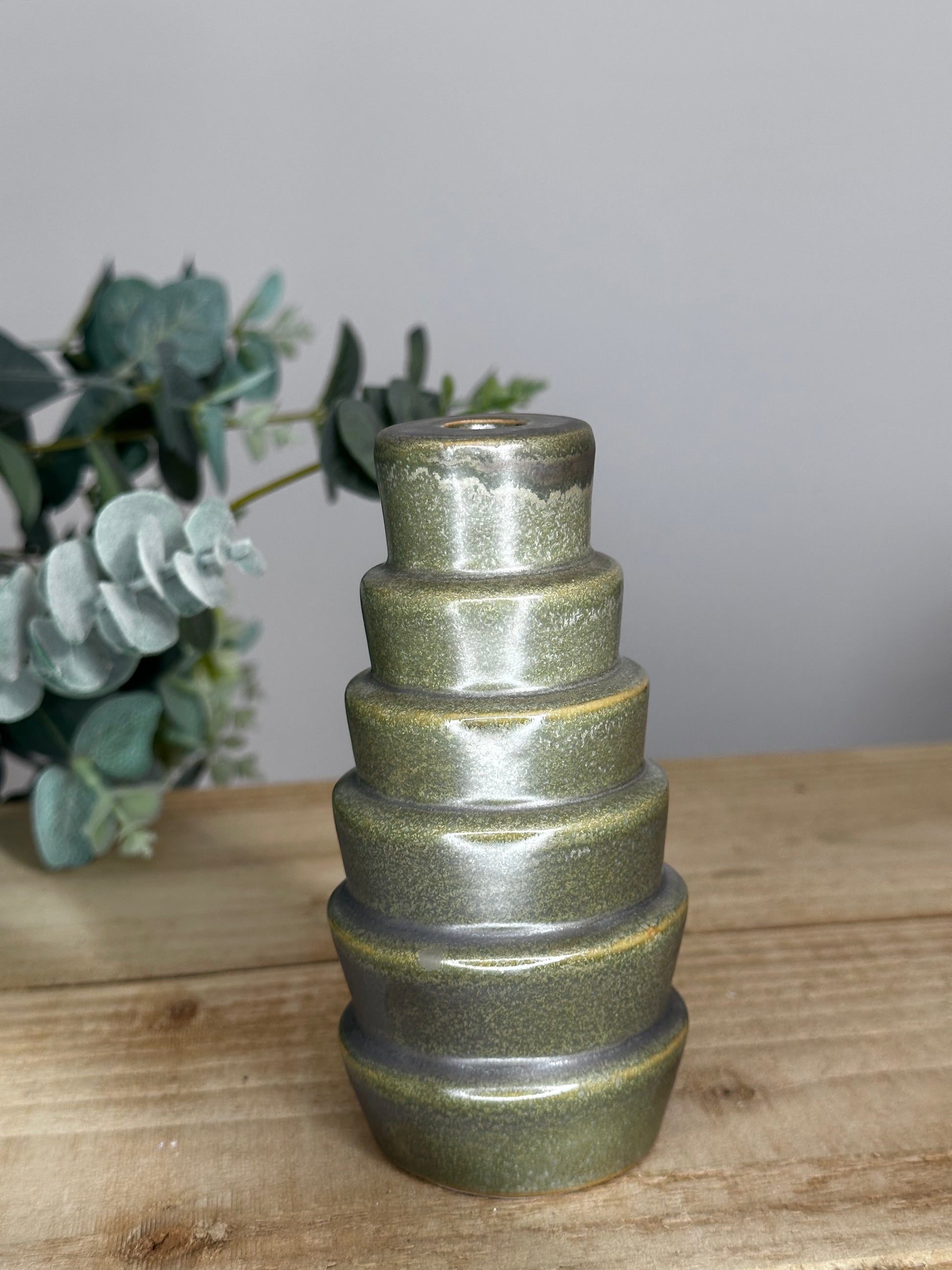 Enhance your table setting or mantel piece style with this Set of 3 Ceramic Design Candle Holders, perfectly sized for thin tapered dinner candles. Each holder features a sleek, modern silhouette and comes in a harmonious mix of neutral tones and green, adding a subtle pop of colour while blending effortlessly with any décor. Crafted from high-quality ceramic, these holders offer both style and stability, making them ideal for everyday dining or special occasions. Their versatile design makes them a timeless addition to your home.